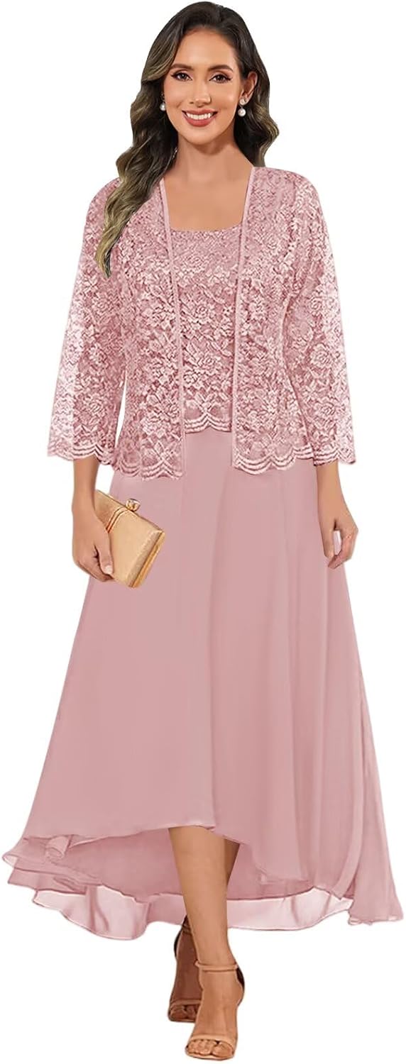 | Embellishment Feature | 2 Pieces, A-Line, Lace-Up Corset Back, Tea Length, with Lace Jacket |