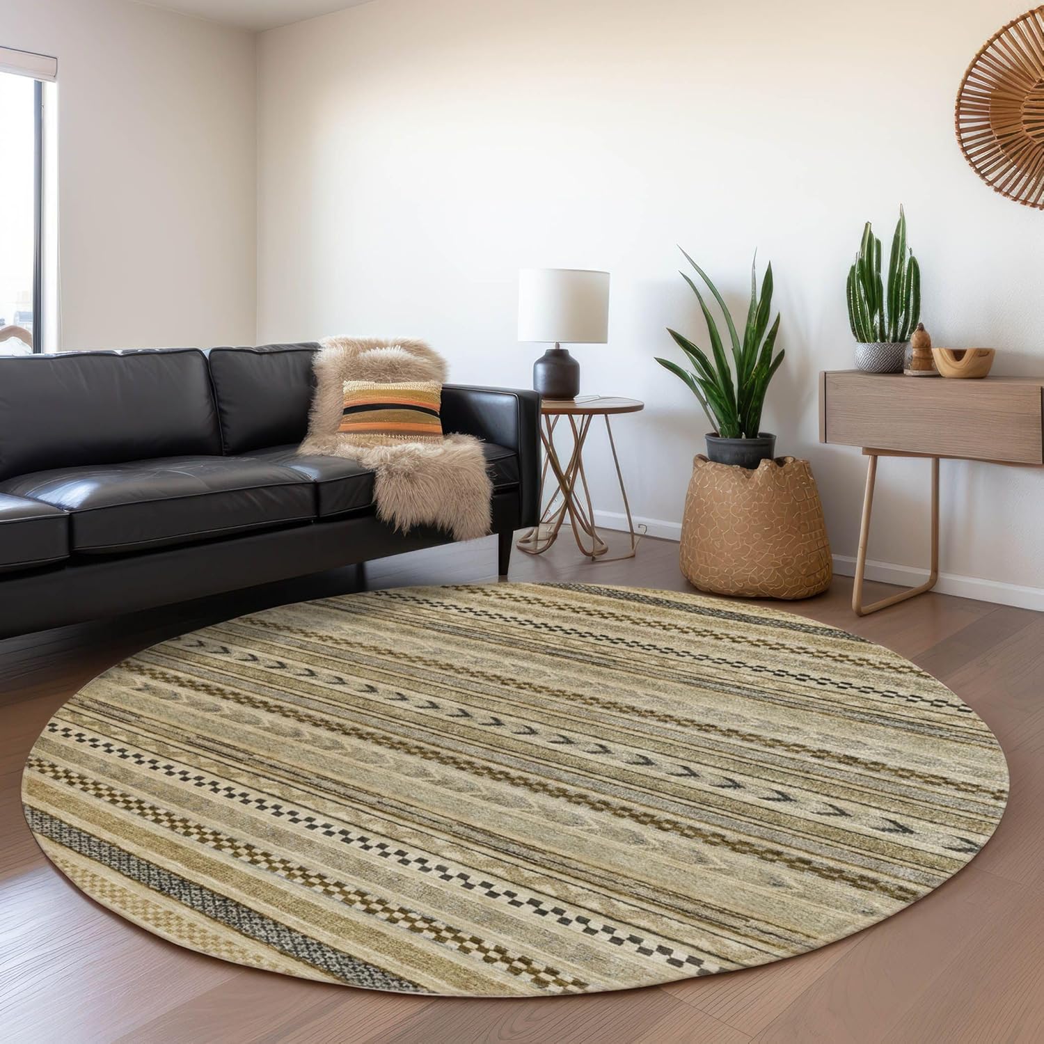 Showcasing small stripes with different motifs in horizontal patterns, this transitional rug offers a refined and sophisticated design that enhances any space. The stripe pattern adds a unique and textured look, perfect for both modern and traditional interiors. UV stabilized for durability, this rug is ideal for use indoors and outdoors, maintaining its vibrant appearance over time. The ultra-thin design makes it easy to manage, and it’s machine-washable for easy upkeep. This rug is an excellent choice for homes with families and pets, providing both style and functionality.