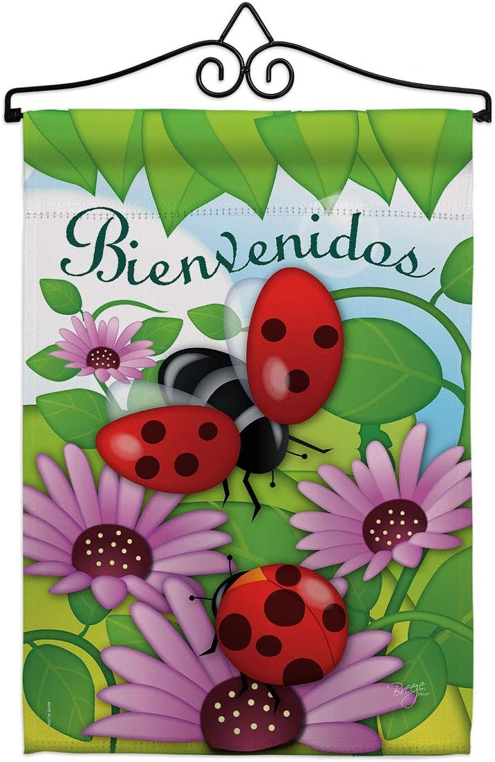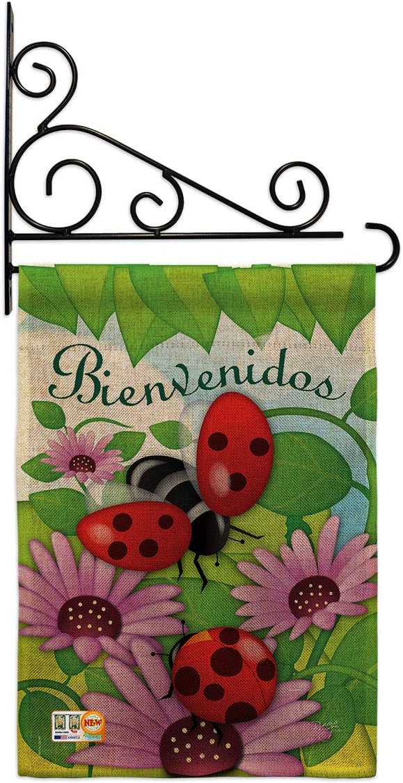 Bienvenidos Tortolitas Burlap Garden Flag Friends Butterfly Ladybugs Dragonfly Bee Springtime Insect Natural Wildlife Small Decorative Gift Yard House Banner Double-Sided Made In USA 13 X 18.5