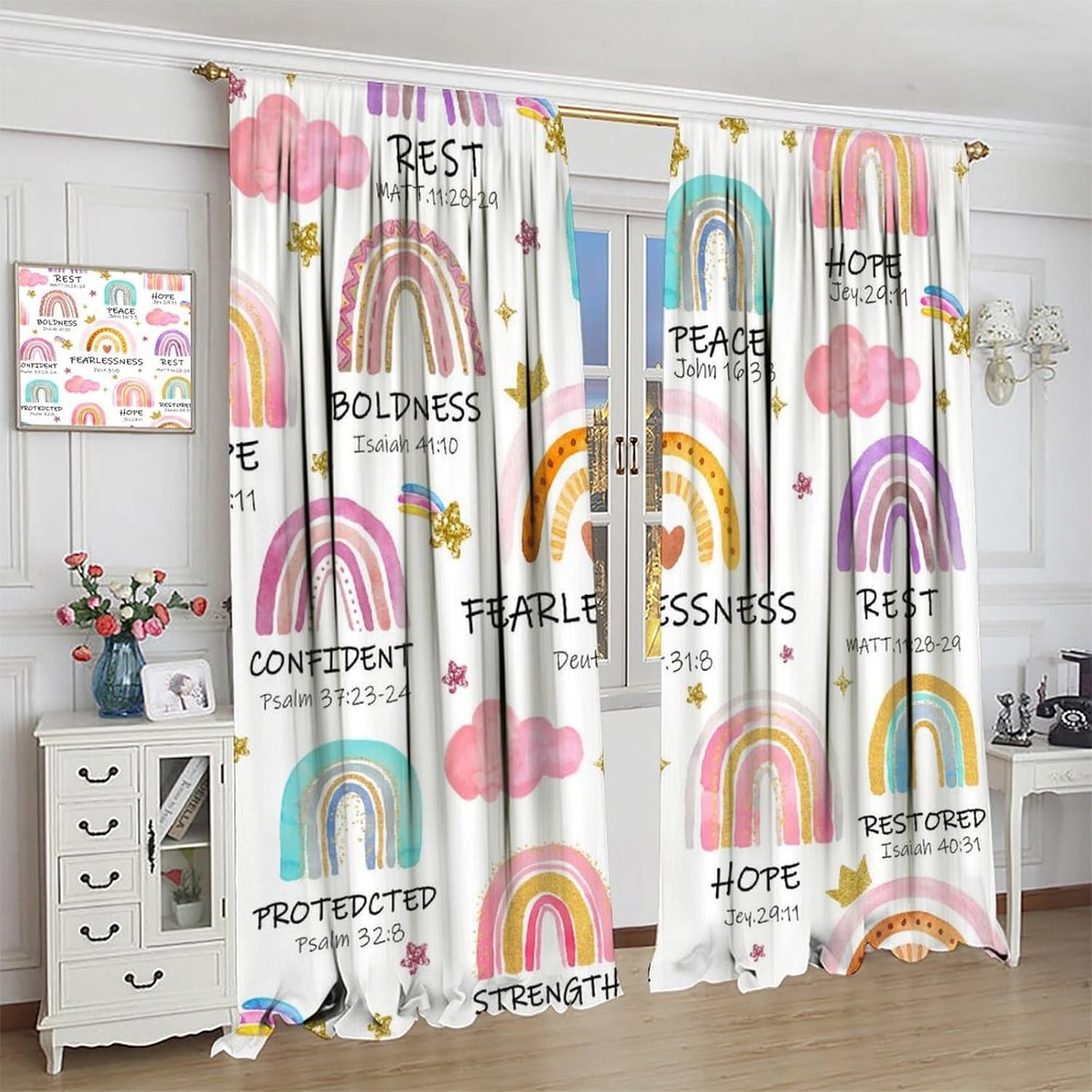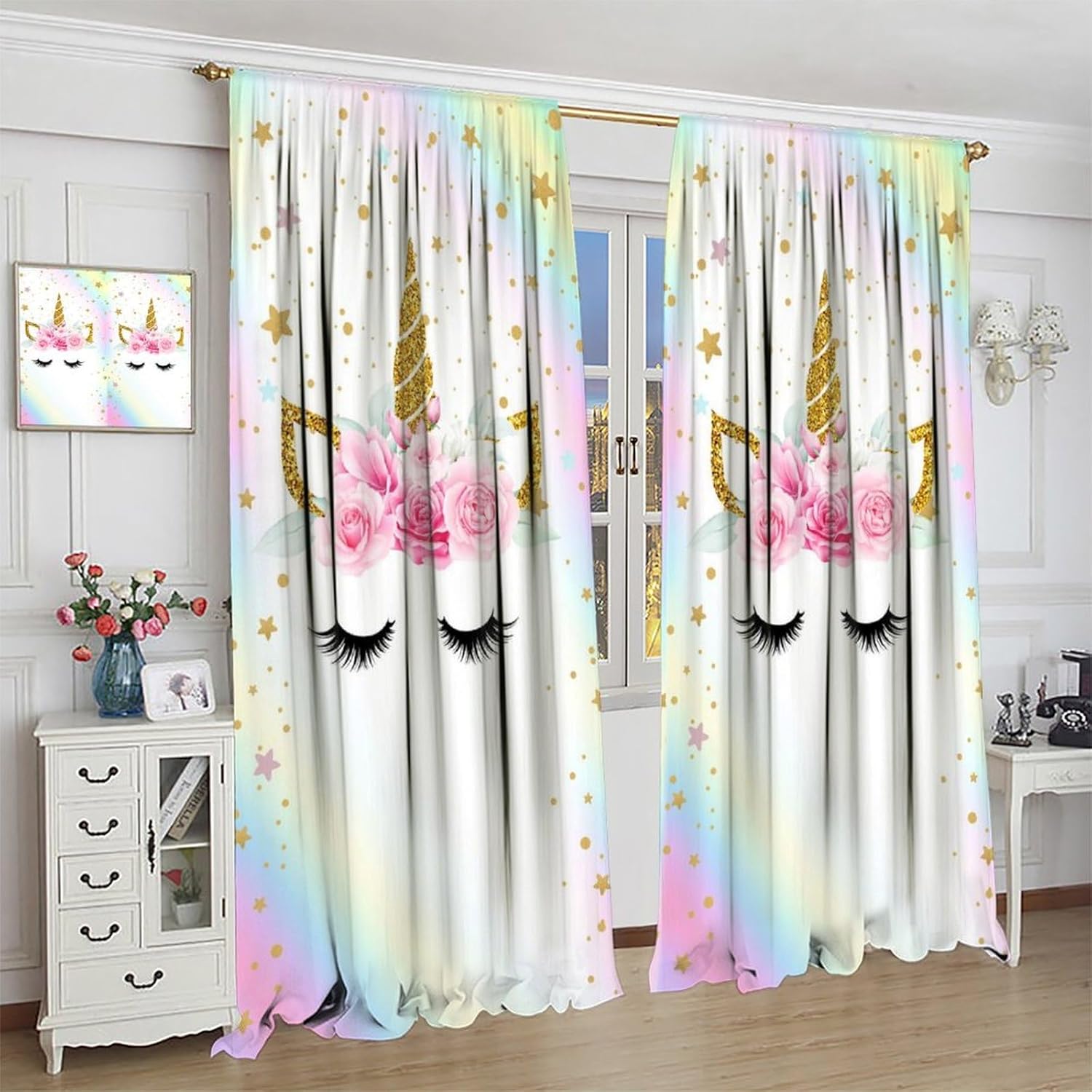 Our curtains are designed to be on-trend in both fashion and home decor, offering a fresh and stylish look. The HD images printed on canvas bring a modern update to any room in your home.Material:These curtains are made from high-quality polyester fabric, ensuring durability and a luxurious feel. They are warm, interesting, and beautifully designed.Reminder:Please be aware that there may be a slight discrepancy of 1-2 cm due to manual measurement. Additionally, while we strive to display the most accurate color in our digital images, there may be variations betwecen the actual product and your screen due to differences in PC monitors.