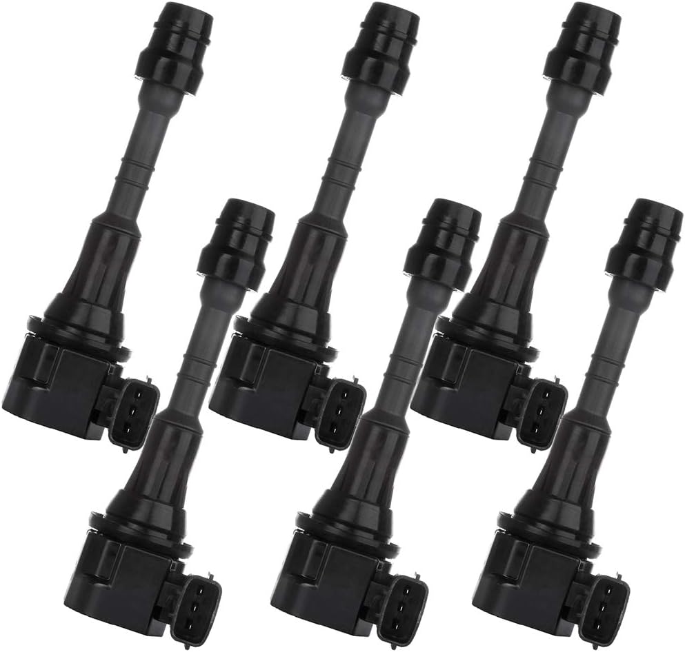 Fitment:for Nissan 350Z 3.5L 2003-2008for Infiniti M35h 3.5L 2012-2013for Infiniti M35 3.5L 2006-2008for Infiniti G35 3.5L 2003-2007for Infiniti FX35 3.5L 2003-2008Please Verify The Part Fits Before Purchasing. Maintenance Tips:1. The outside surface of the ignition coil should be kept clean2. the connection between the high-pressure leading screw of the ignition coil and the high-pressure wire is firm and reliable. If the connection is loose, it is easy to spark and burn out the connection part. 3. One end of the secondary winding of the ignition coil is connected with the spark plug through the high-voltage wire and spark plug cap. In use, the high-voltage wire and spark plug cap should be prevented from loosening. When the high voltage wire or spark plug cap falls off, the high voltage generated by the secondary winding will rise to the limit determined by the working capacity due to the open load, which is easy to cause the breakdown and damage of the secondary winding.
