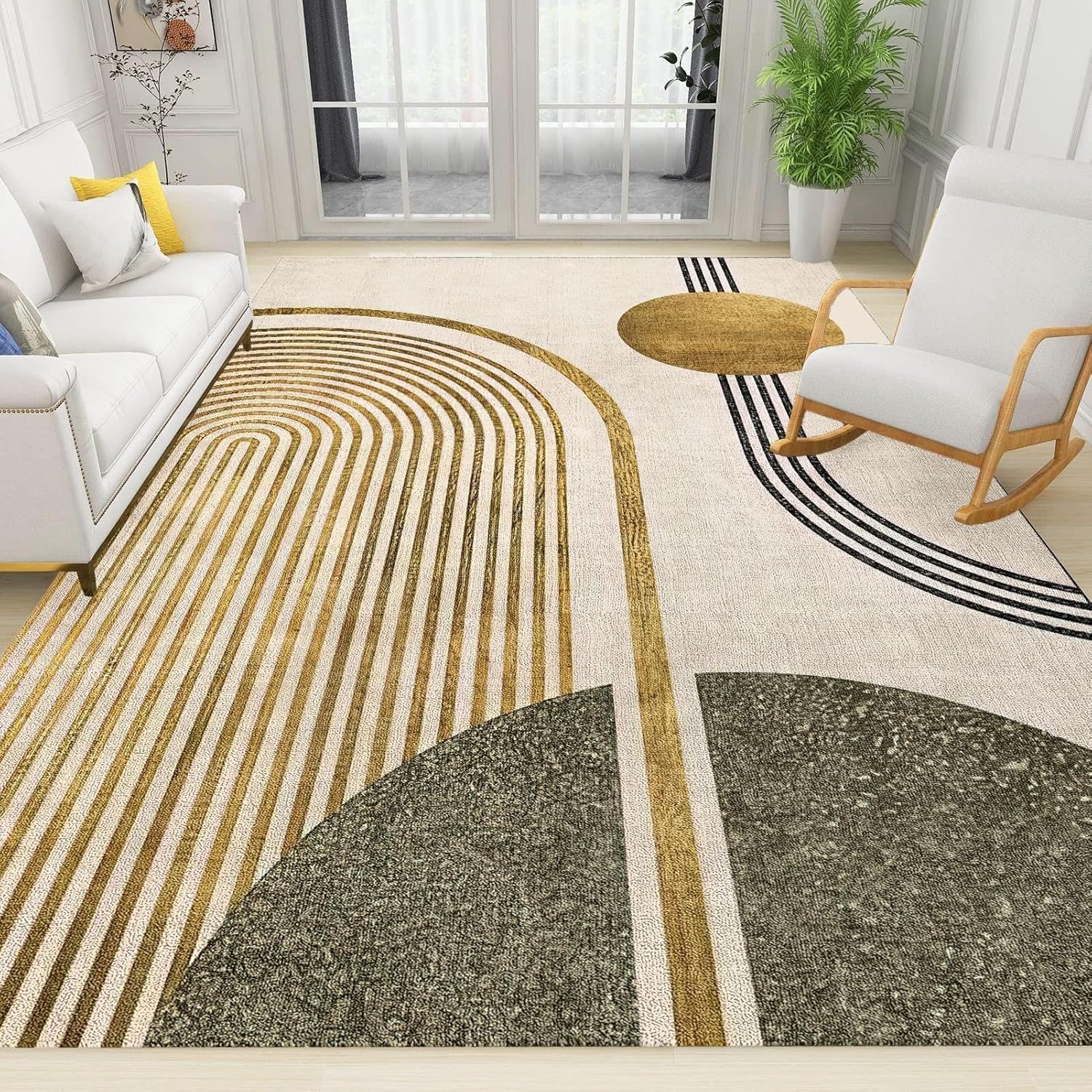 Area rugs add a new interest of home life and make the home appear lively and warm, Let art extend to every corner.Feature:→ Carpet feature design adopts 3D ink jet printing technology.strong three-dimensional sense diverse patterns, novel design, non-fading, lasting and clear. Take your room from drab to beautiful.→ The bottom is designed with premium material non-slip rubber backing to ensure that it will not move and slip to improve safety, also protects your floors from dust and wear and tear.→ The area rug is made of soft and delicate flannel, with unique fiber locking technology and neatly wrapped sides that are not prone to shedding or unraveling, Increase the life of your carpet.→ Runner rugs consist of highly absorbent felt, can absorb moisture and avoid leakage, ensure resistance to common spills and stains, Designed to with stand daily walking, washable rugs great for areas with high traffic.→ Unique printed rug will add leisure and fun to you, can be used to study, yoga, reading, taking a nap etc. Let your kids or pets can play very happily and comfortably on the area rug. Soft area rugs reduce noise for a quiet environment.→ Area rug is perfect for decorate your home when holiday or themed party. Perfect gift ideas for housewarming, anniversary, wedding, Christmas, Valentine's Day, etc.Specification:Rug Size / Weight:8' x 10' = 95" x 118" / 1.3LBMaterial: Flannel & Sponge & Non-Slip BottomPacking List: Carpet x1Note :The color of the real item may vary slightly, due to photography and different computer show.It is recommended that you clean the carpet after receiving it, so that it will be restored to its original state without the trouble of creases.Because of different measuring tools, there may be a deviation of ±2%.