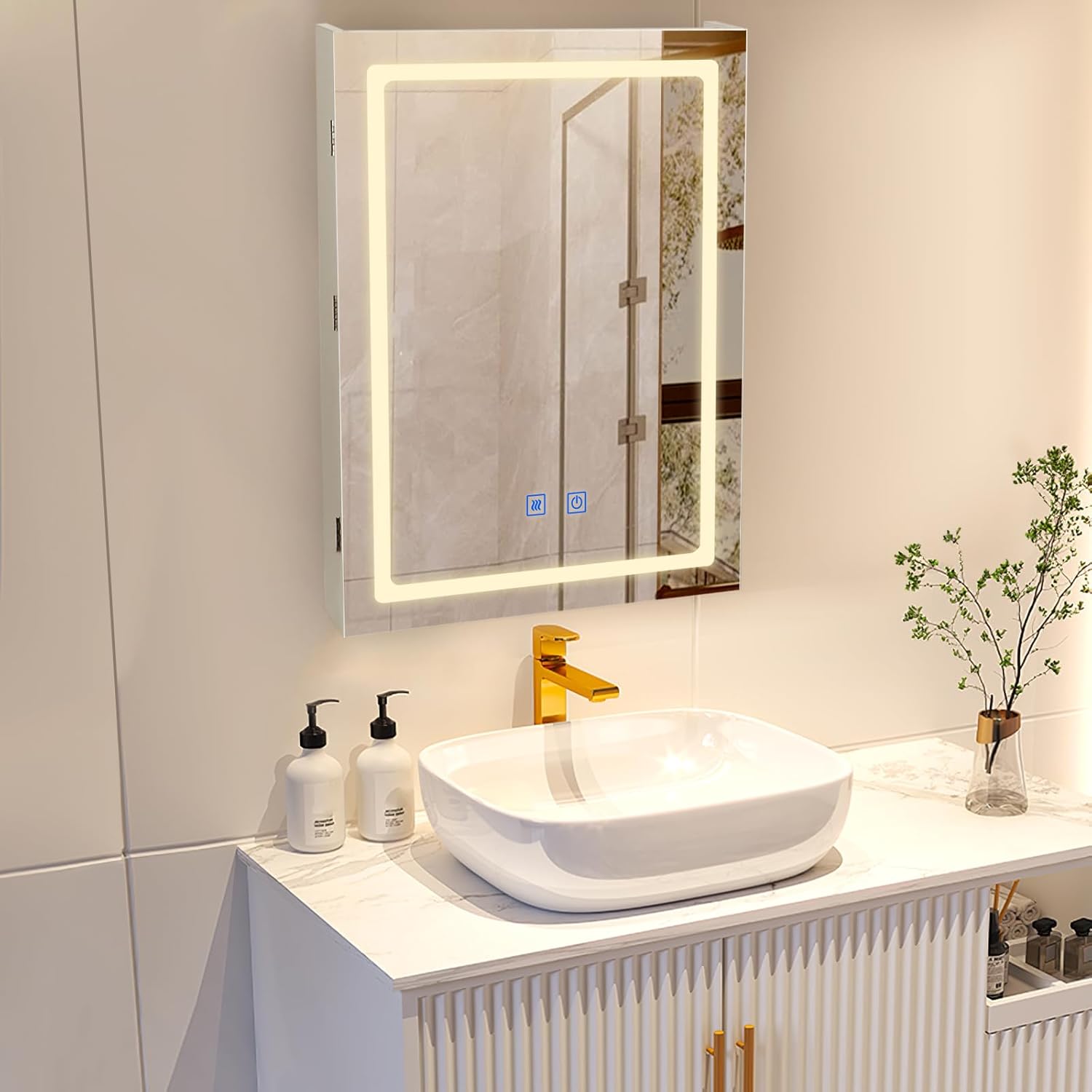 | Included Components | 3 color lighted Mirror with dimmer, Defogger Function, Storage Shelves |